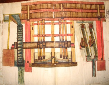 Frantumazione del minerale e lavaggio delle sabbie da parte di due artiglieri sabaudi in un disegno della Biblioteca Reale di Torino (seconda metà del XVIII secolo).