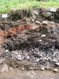 Strati successivi di residui di lavorazione della fonderia (scorie metallurgiche, carboni, argille termoalterate)